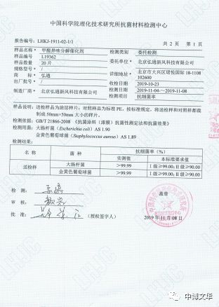 4、中科院理化技术研究抗菌检测中心。